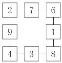 6. 在□里填上合适的数,使每条线上三个数相加的和都等于15。