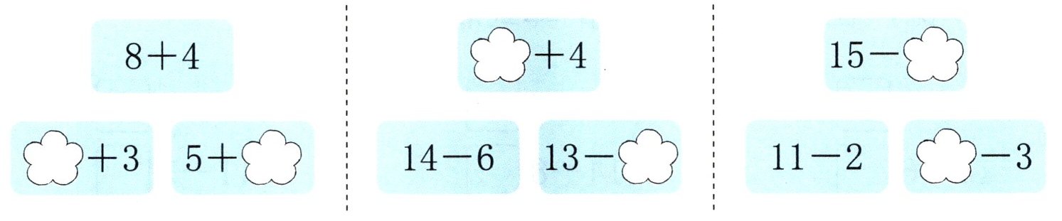 右边:$\boldsymbol{12}-\boldsymbol{4}=\boldsymbol{8}$,$\boldsymbol{12}-\boldsymbol{8}=\boldsymbol{4}$。