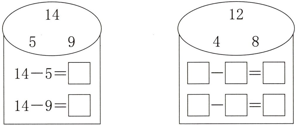 左边:$14 - 5=\boldsymbol{9}$,$14 - 9=\boldsymbol{5}$;