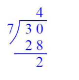 $ 30 ÷ 7 = $$ $$ 46 ÷ 8 = $$ $$ 80 ÷ 9 = $