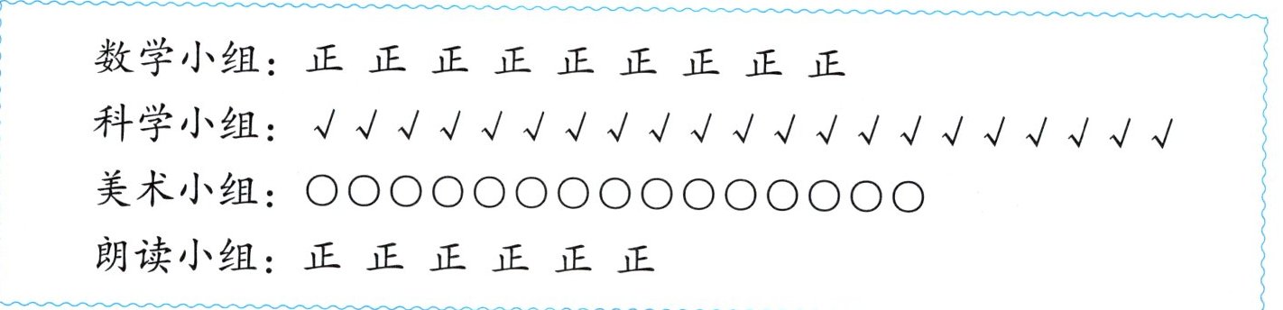 2. 二年级同学参加学校课外兴趣小组的人数情况记录如下。(每人限参加一个小组)