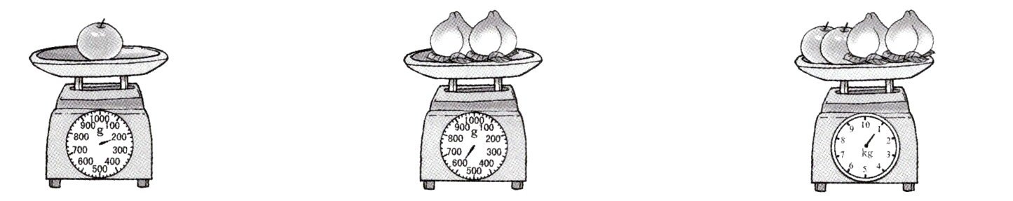 1个苹果约重( )。 1个桃子约重( )。 2个苹果和2个桃子约重( )。