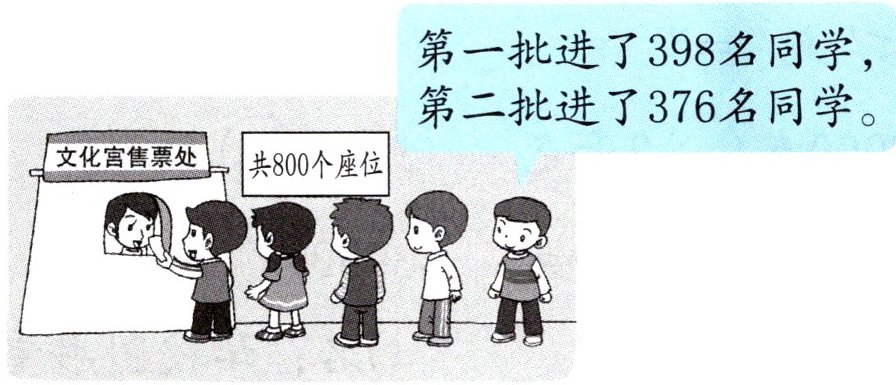 (2)$398<400$ $376<400$ $400+400=800$(名) 座位够。