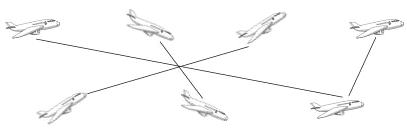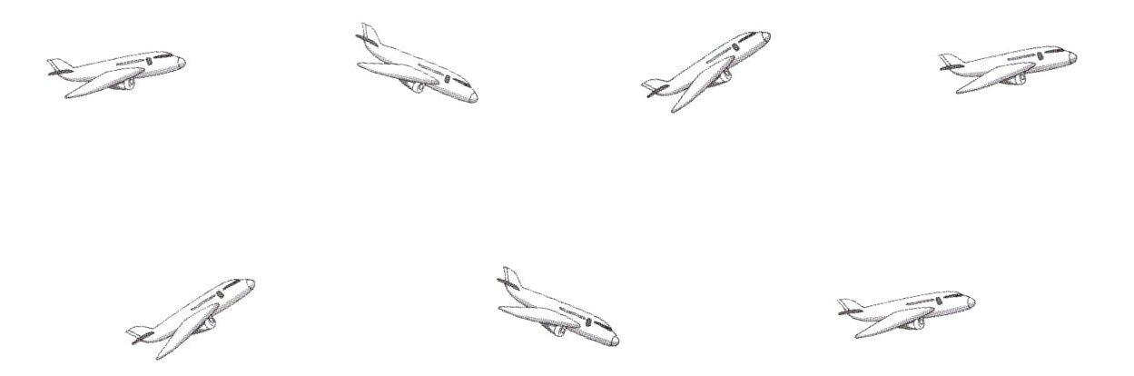 (1)把上下两行可以通过平移重合的飞机用线连起来。