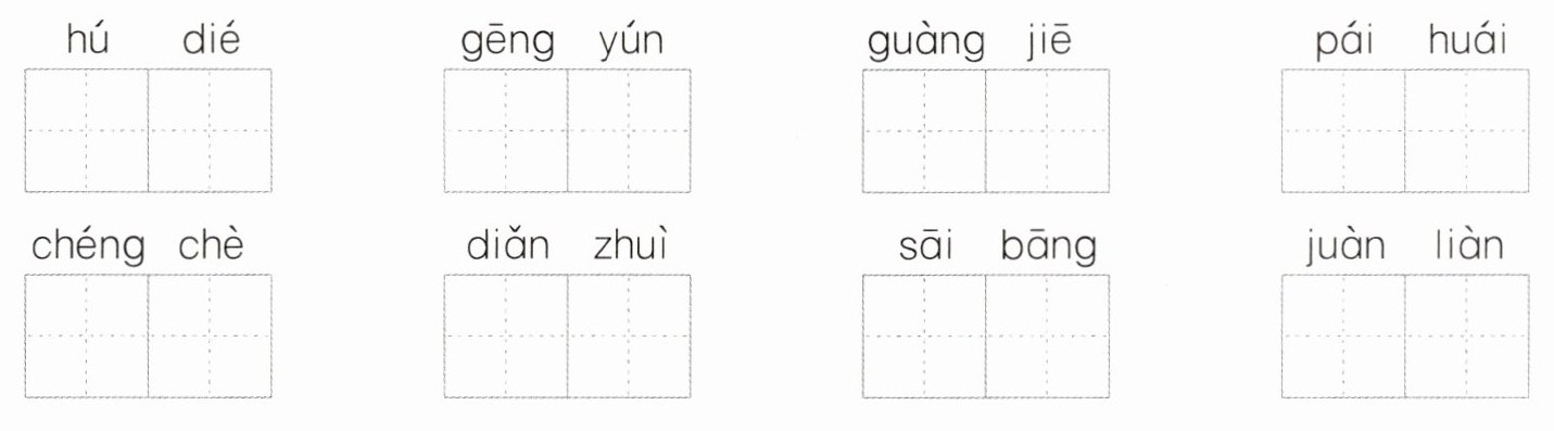 蝴蝶 耕耘 逛街 徘徊 澄澈 点缀 腮帮 眷恋