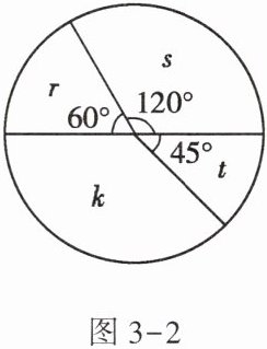 5.图3-2所示的是一个游戏转盘,自由转动转盘,当转盘停止后,若指针落在所示区域内事件发生的概率依次记为r,s,t,k,则(