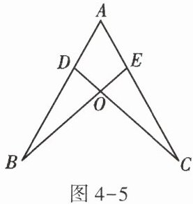 6. 如图4-5,点$D$,$E分别在线段AB$,$AC$上,$CD与BE相交于点O$,已知$AB = AC$,现添加以下哪个条件仍不能说明$\triangle ABE\cong\triangle ACD$(