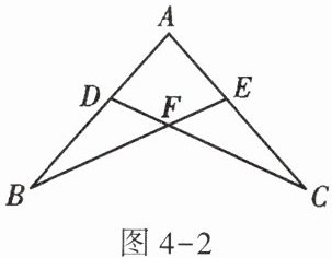 3. 如图4-2,$AB = AC$,要说明$\triangle ADC\cong\triangle AEB$,需添加的条件不能是(