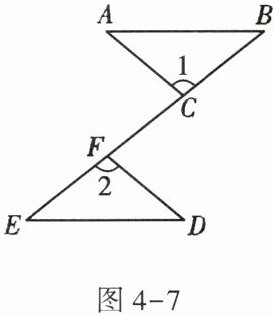 11. 如图4-7,点$C$,$F在线段BE$上,$BF = EC$,$\angle 1 = \angle 2$。请你添加一个条件