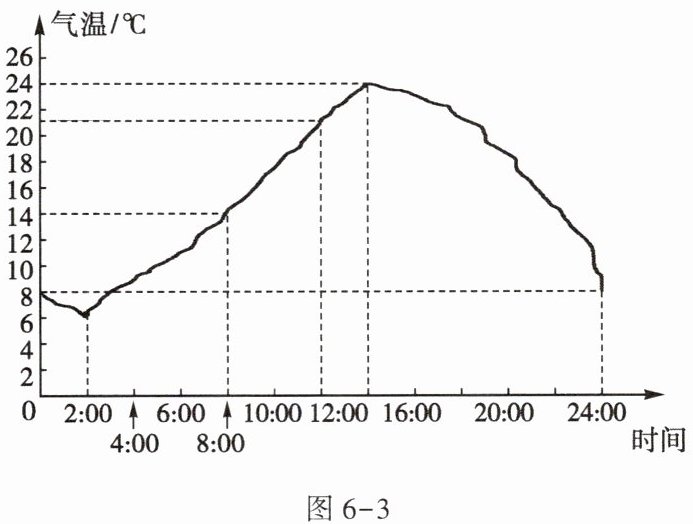 4. 如图6-3是某市某一天内的气温变化图,据图可知下列说法错误的是 (