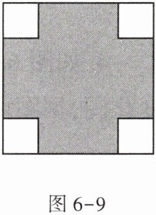 11. 如图6-9,在一个边长为10cm的正方形的四个角处,都剪去一个大小相同的小正方形,当小正方形的边长由小到大变化时,图中阴影部分的面积也随之发生变化。