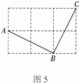 连接$AC$,由勾股定理,得$AB^{2} = 1^{2} + 2^{2} = 5$,$BC^{2} = 1^{2} + 2^{2} = 5$,$AC^{2} = 1^{2} + 3^{2} = 10$,所以$AB = BC$,$AB^{2} + BC^{2} = AC^{2}$。