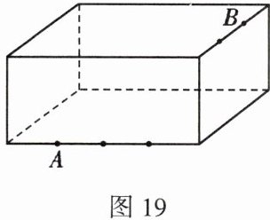 6. 图19是一个长4m、宽3m、高2m的有盖仓库,在其内壁的A处(长的四等分点)有一只壁虎,B处(宽的三等分点)有一只蚊子,则壁虎沿内壁爬到蚊子处的最短距离为