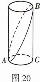 7. 如图20,在一个圆柱上、下底面有相对的A,B两点,现将一根红线沿侧面缠绕圆柱一圈,并且经过A,B两点。若圆柱的高为8cm,底面圆的周长为12cm,那么至少需红线多长?