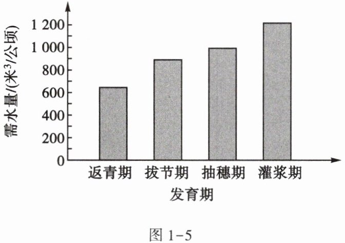 6. “春分麦起身,一刻值千金。”春分前后,冬小麦进入拔节期。图1-5是小麦在不同时期需水量的测量数据,从图中可以看出小麦的拔节期是(