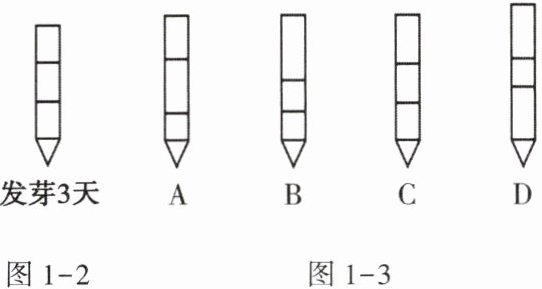 4. 图1-2是某种子发芽3天的根尖示意图,在图1-3中,表示7天以后根尖生长情况的正确图形是(