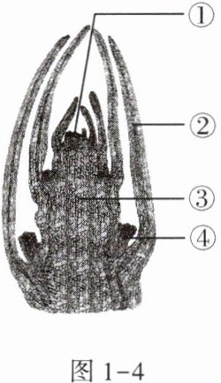 5. 图1-4是柳树的叶芽结构模式图,将来发育成茎的结构是(