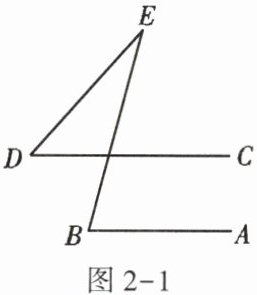 3. 如图2-1,$AB// CD$,$\angle B = 75^{\circ}$,$\angle E = 27^{\circ}$,则$\angle D$的度数为(