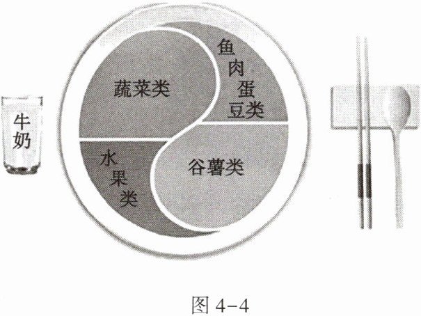 8. 《中国居民膳食指南》通过平衡膳食餐盘(如图 4-4)宣传平衡膳食的理念。下列相关叙述错误的是 (