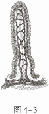 7. 图 4-3 表示人体消化道内吸收营养物质的一种结构,该结构的名称及其能够吸收的部分物质分别是 (