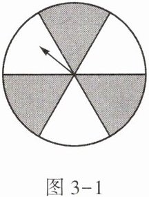 3.如图3-1,转盘中6个扇形的面积都相等,任意转动转盘1次,当转盘停止转动时,指针落在阴影部分的概率为(