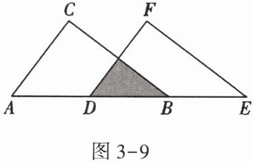 12. 如图 3 - 9,将 $ \mathrm{Rt} \triangle ABC $ 沿斜边 $ AB $ 向右平移 $ 5 \mathrm{cm} $,得到 $ \mathrm{Rt} \triangle DEF $. 已知 $ AB = 10 \mathrm{cm} $,$ BC = 8 \mathrm{cm} $,求图中阴影部分三角形的周长.