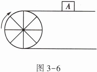 9. 如图 3 - 6,当半径为 $ 30 \mathrm{cm} $ 的转动轮转过 $ 120^{\circ} $ 角时,传送带上的物体 $ A $ 平移的距离为