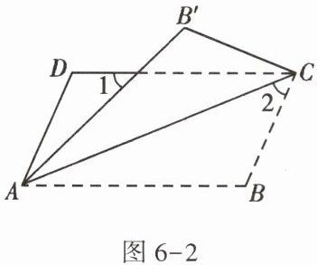 ABCD沿对角线AC折叠,使点B落在B'处,若$∠1= ∠2= 44^{\circ},$则∠B的度数为(