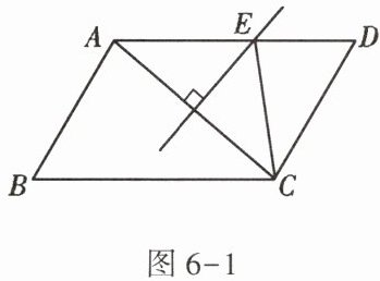 1. 如图6-1,在ABCD中,$AB= 3$,$BC= 5$,$AC的垂直平分线交AD于点E$,则$\triangle CDE$的周长是(