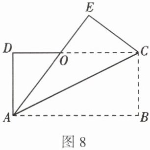 4. 如图 8, 矩形纸片 $ABCD$ 中, $AD = 4 \text{ cm}$, 把纸片沿直线 $AC$ 折叠, 点 $B$ 落在点 $E$ 处, $AE$ 交 $DC$ 于点 $O$, 若 $AO = 5 \text{ cm}$, 则线段 $AB$ 的长为 (