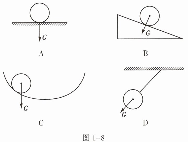 9. 如图 1-8 是小球所受重力的示意图,其中正确的是(
