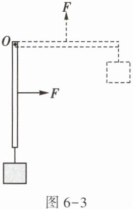3. 如图6-3所示,一根长为40cm的轻质直杆可绕O点转动,杆的末端悬挂重为50N的重物,用一个始终跟杆垂直的力F作用于杆的中点,并使杆由竖直位置缓慢转到水平位置,忽略摩擦阻力。在这个过程中,力F的大小将