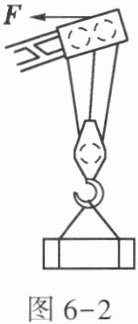 2. 如图6-2,塔式起重机上的滑轮组将重为$1.2×10^{4}N$的重物匀速吊起2m,用了5s,滑轮组的机械效率为80%。提升重物做的有用功为