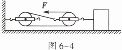 4. 如图6-4所示,用滑轮组拉动重为200N的物体在水平桌面上做匀速直线运动。已知F= 10N,滑轮组的机械效率为80%,则物体与桌面之间摩擦力的大小为