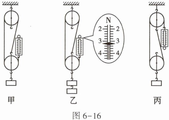 。(3)若不计摩擦及绳重,图6-16丙中拉力F大小即表格中③处数据应为