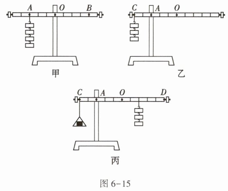 g。②然后小明将C位置的3个钩码取下,挂到右侧作为“秤砣”,如图6-15丙所示。为了将A点作为“杆秤”的零刻度线,小明应在图6-15丙C位置处装配一质量为
