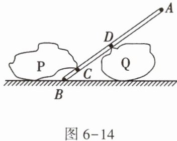 14. 如图6-14所示,用一根自重可忽略不计的撬棒撬石块,若撬棒C点受到石块P的压力,且CD>BC,请作出撬动石块P所用的最小动力F及其力臂l。