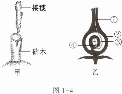 (1)常言说:樱桃好吃树难栽。而果农通过嫁接的方式(如图1-4中甲所示)很容易栽培优质樱桃。保证樱桃嫁接成功的关键是
