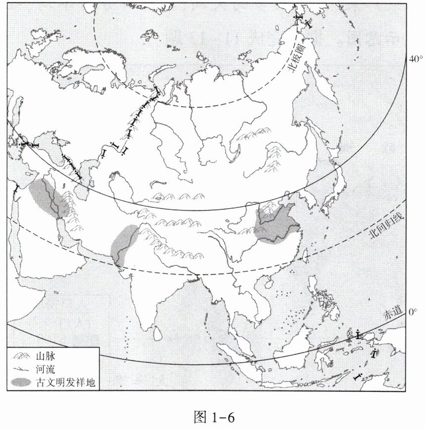 亚洲古文明多姿多彩,是人类文明的摇篮。图1-6为亚洲古文明发祥地位置示意图。据此完成16~18题。