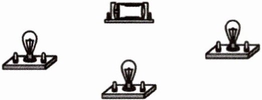 材料:电池一对,电池盒一个,小灯泡和灯座各三个,导线若干。