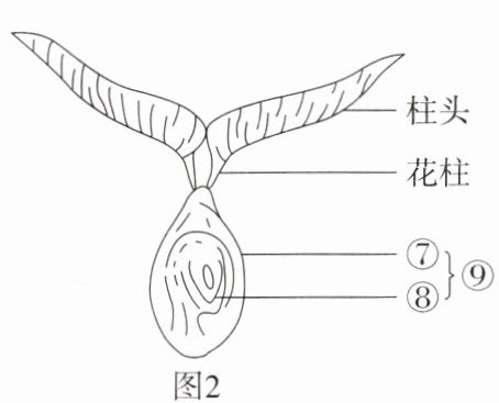 12. 如图1为小麦种子部分结构示意图,图2为小麦雌蕊结构示意图,请据图回答下列问题。