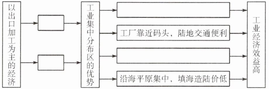 (2)将下列内容序号填入日本工业布局原因框架图中。