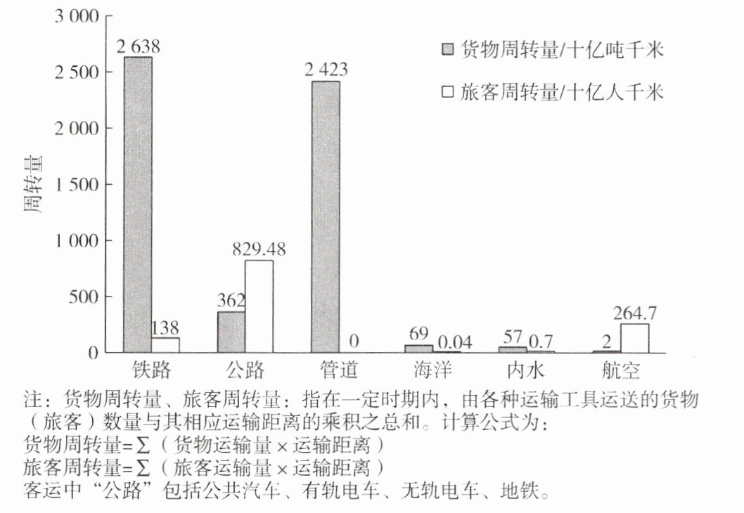 (1)2023年俄罗斯的交通运输方式中,货物周转量最多的两种运输方式是______和______;旅客周转量最多的运输方式是______和______两种。