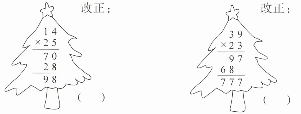 $25×40$:先算$25×4=100$,两个乘数末尾共有1个0,在100后面添1个0,得1000。