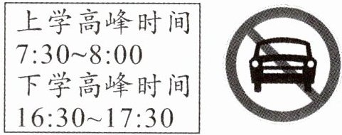 1. 为了保障学生的安全,某学校旁的道路上悬挂着如下图所示的标志,禁止机动车在上、下学高峰时间通过。请你计算一下,一天中允许机动车通过的时间有多长?
