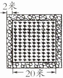 2. 广场上有一个边长为 20 米的正方形草坪,草坪周围铺了一条 2 米宽的鹅卵石路(如图)。这条路的面积是多少平方米?