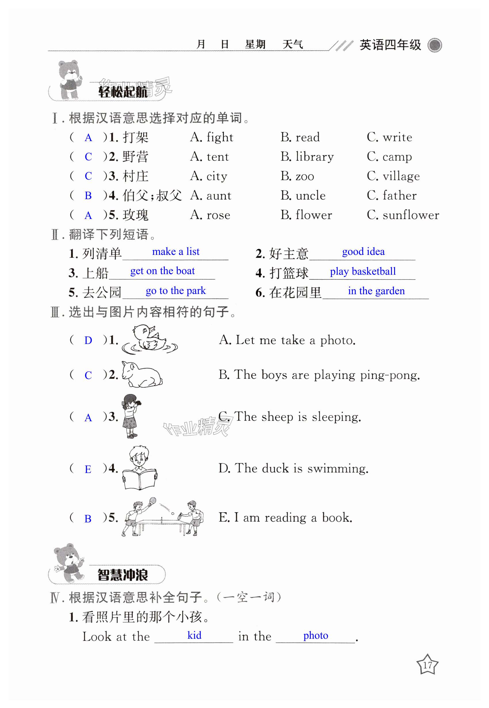 注:目前有些书本章节名称可能整理的还不是很完善,但都是按照顺序排列的,请同学们按照顺序仔细查找。练习册 2025年湘岳假期暑假作业四年级英语湘鲁教版 答案主要是用来给同学们做完题方便对答案用的,请勿直接抄袭。