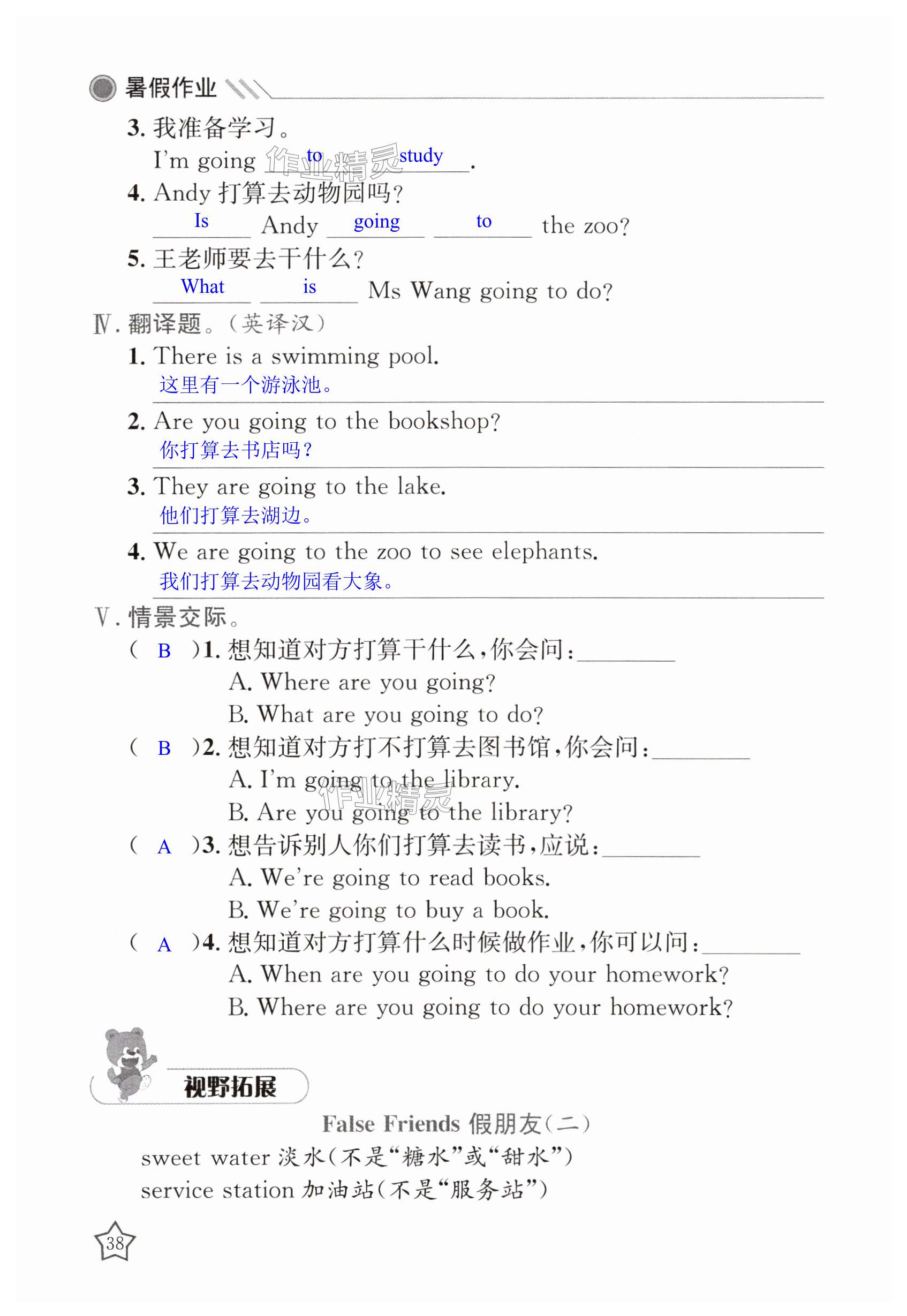 注:目前有些书本章节名称可能整理的还不是很完善,但都是按照顺序排列的,请同学们按照顺序仔细查找。练习册 2025年湘岳假期暑假作业四年级英语湘鲁教版 答案主要是用来给同学们做完题方便对答案用的,请勿直接抄袭。