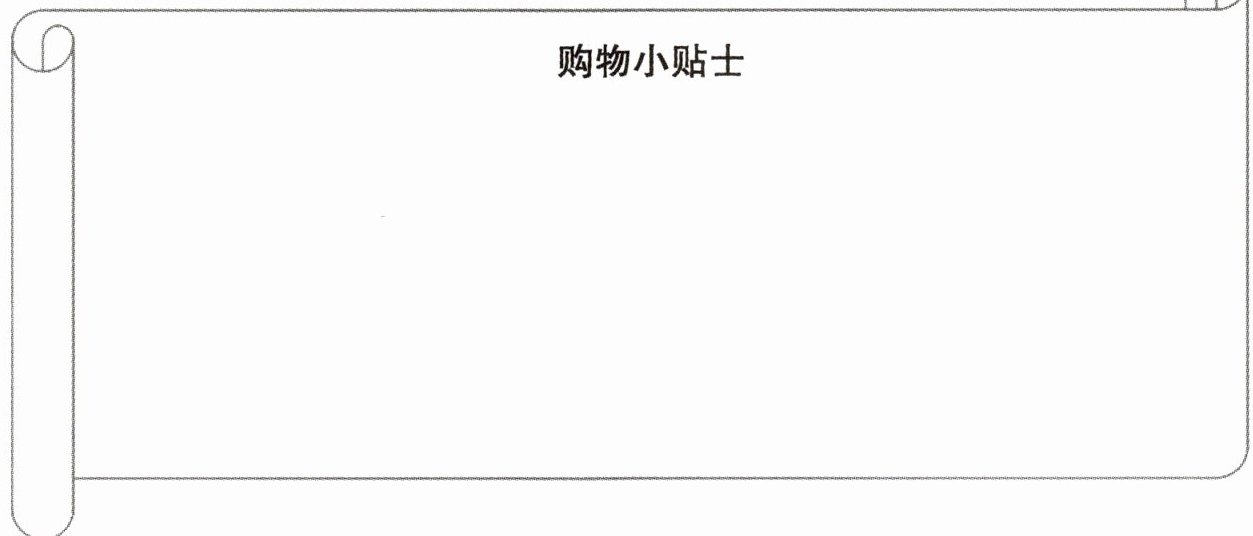 学习了《买东西的学问》这一课的内容之后,请你为家人制作一张“购物小贴士”,里面至少有五条提醒内容。
