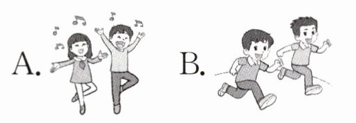 ()1.We sing and dance. A. B.